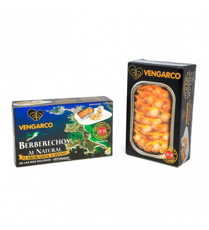 Especificaciones: berberechos (cerastoderma edule) de las rías gallegas al natural, de tamaño homogéneo y seleccionados a mano en cada lata.