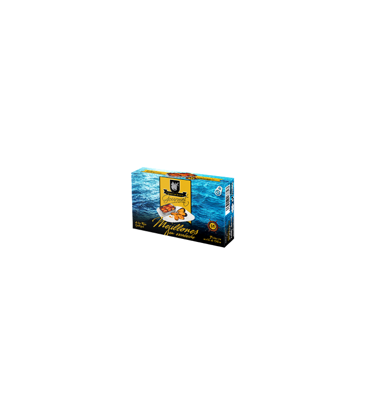 Especificaciones: Mejillones (Mytilus galloprovincialis) de las Rías Gallegas, de tamaño homogéneo en salsa escabeche y seleccionados a mano en cada lata.