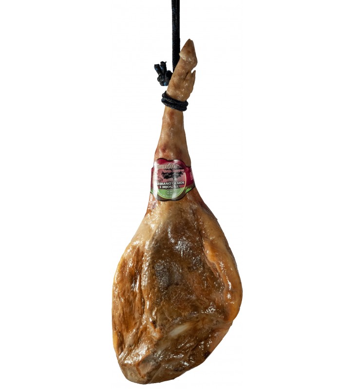 Cerdos alimentados en granjas con piensos naturales, por cuya razón es un jamón de gran corte y exquisito paladar. La curación es similar a la del jamón de bellota.